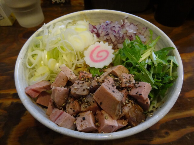 大振りのレアチャーシューは肉厚で噛み応えも有って肉の旨味を十分に楽しめます。