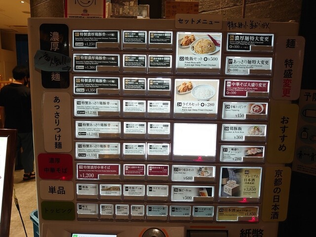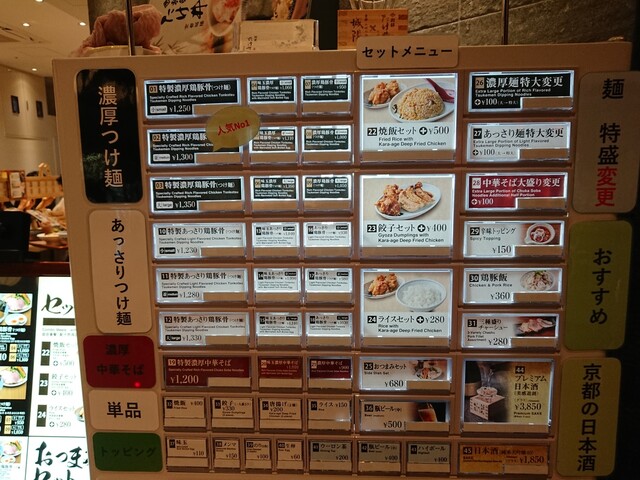 19時20分頃の到着です。券売機で濃厚鶏豚骨つけ麵を購入して入り口近くの席に着席です。