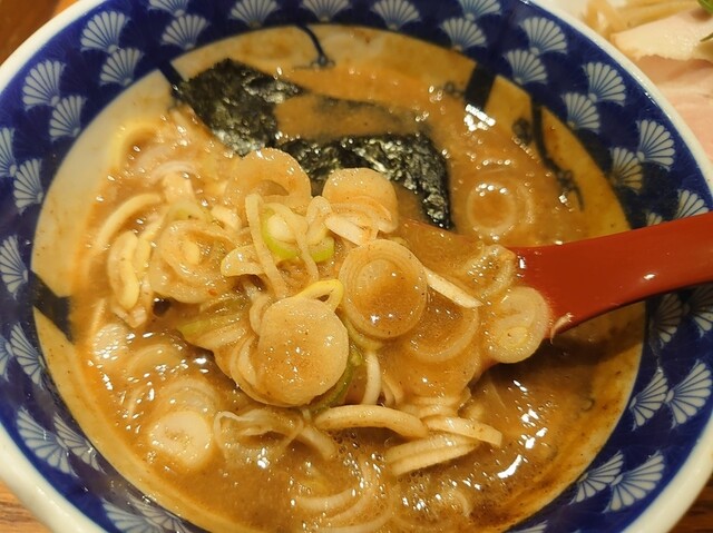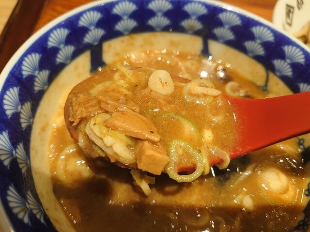 つけ汁は濃厚な魚介出汁と鶏豚骨出汁のトリプル出汁の旨味が濃厚で、野菜由来と思われる甘みに少し酸味も感じられます。