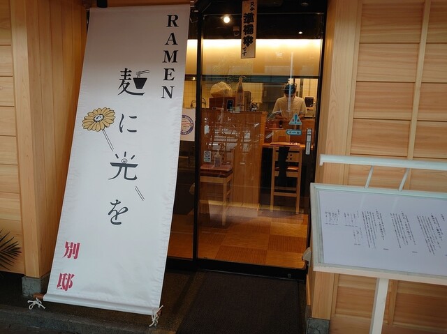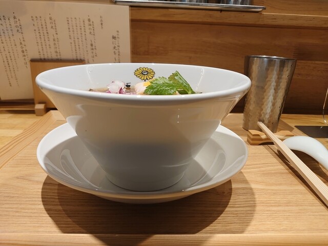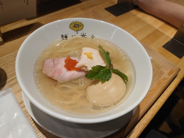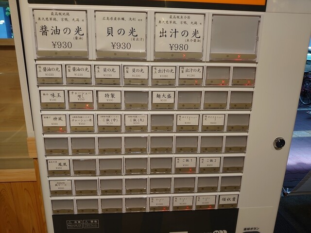 今日未食の出汁の光を味玉トッピングの選択です。入り口近くのカウンター席に着席です。スタッフさんい食券を渡して待ちます。