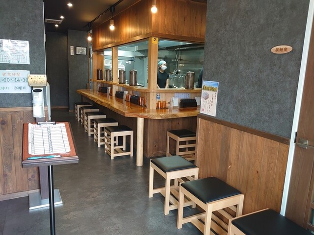 奇麗な店内はL字のカウンター席8席で、入り口には中待ちが6席有ります。ご夫婦で営業されてるようです。