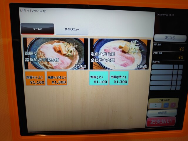 意外と早めの案内で15分ほほどで店内に案内されました。券売機で私は泡魚介塩白湯(特上)を娘は鶏豚々(特上)にネギ塩チャーシュー丼を購入してスタッフさんに券を渡すと大盛が無料と言うことで、私の塩を大盛でお願いしまして案内されたカウンター席に席に着席です。