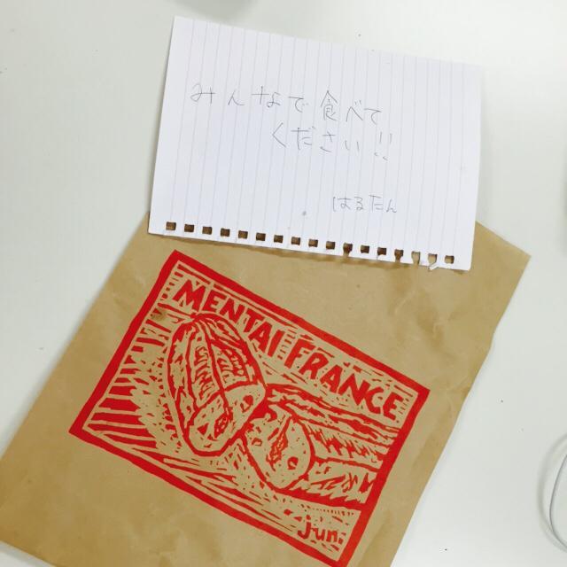 この日は、同じみの明太フランスと、家族の大黒柱(1/2)、そして、はるたんこと上野遥ちゃんおすすめのツナパンをチョイス♪