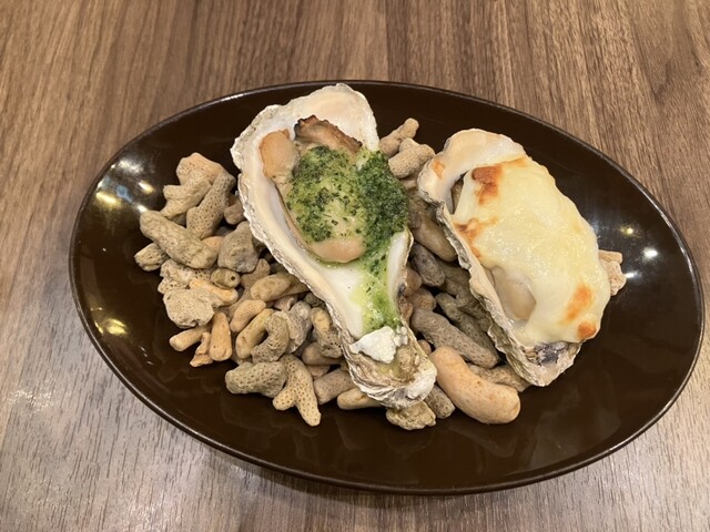 焼き牡蠣はバシルのガーリックオイルとグラタン。