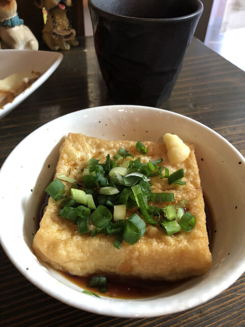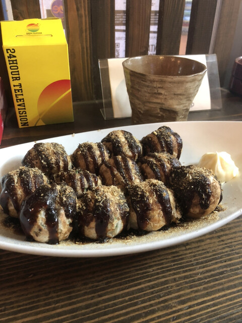 今日はたこ焼きソース味、厚揚げ、そば焼酎お湯割りいただきました。