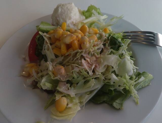 ランチメニューでよく注文するのは、「えびみそパスタクリームチーズ添え」ランチセット(サラダ・ドリンク付き)です。