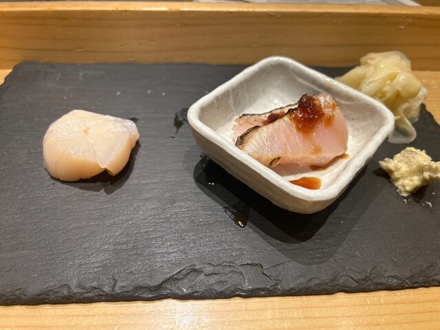 まずはドリンクオーダー。お店特製のジンジャーエールにしました。コースが始まると蜆のだし汁に始まり、次から次へと出てくる品数。お寿司もおつまみもどれも美味しかったです。山葵も目の前で擦ってくださったものを提供されます。私には量が多かったため、途中でストップしていただきました。その後にだし巻き卵が出てきたので残念でした。先に内容を確認しておけば良かったな…。とにかく味は文句無しです!