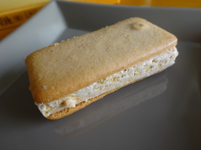 写真でもちょっと写っていますが、中のサンドされたクリームにはクランチが混ぜてありこのサクサクとした食感がすごくイイ。
