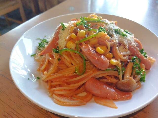 ナポリタンは喫茶店の昔懐かしい系ではなく野菜から旨みをもってきています。今回はコーンが甘かった~
