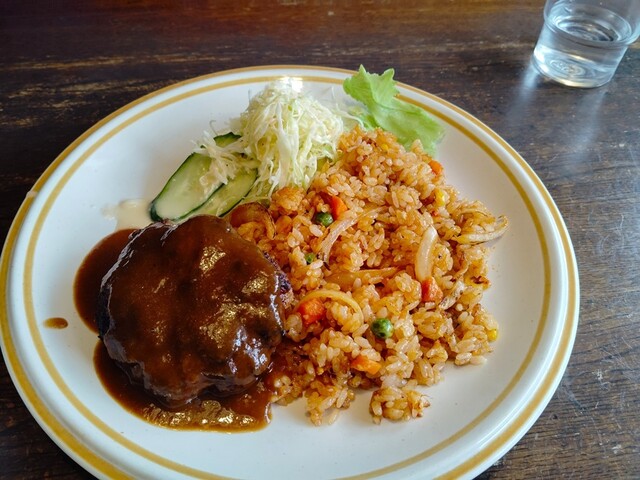 そんな訳で本日は私「ハンバーグセット」ドリンク付1000円、旦那さんは毎度の「ハンバーグピラフ」です。ハンバーグセットは目玉焼きとナポリタンが付け合せで載るのがポイント♪味噌汁とドリンクもあるので超お得です!満足ランチでお腹いっぱいデス♪