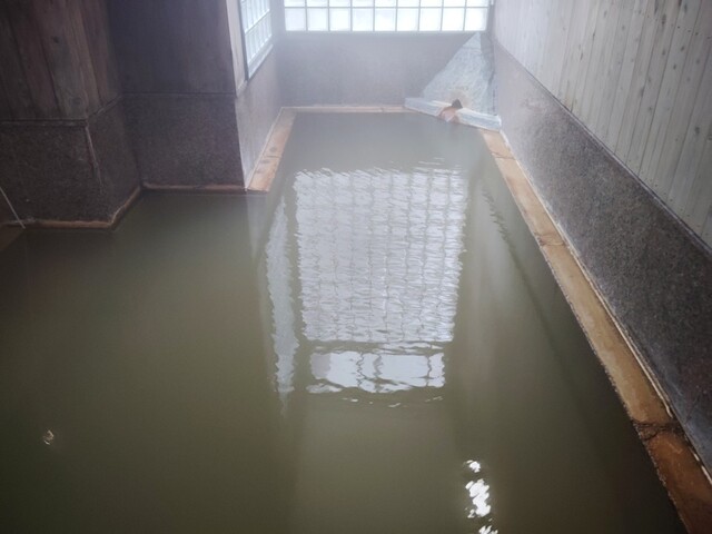 大浴場は組合の湯と自家源泉の混合。昆布茶色の濁り。体感で43度くらい。冬場はやはりこの大浴場の湯の方が温まります。シャワーもあり問題ナシ。