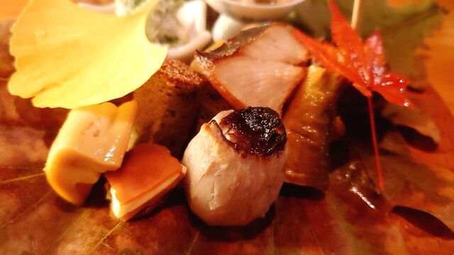 大きな枯れ葉であしらった八寸とか最高やん。