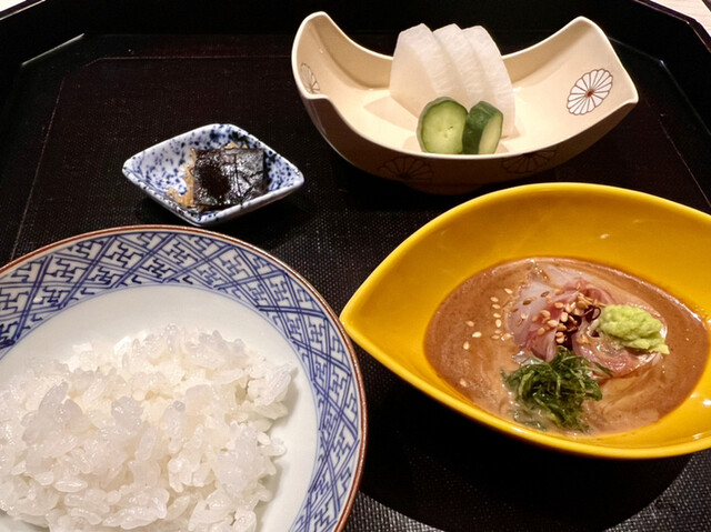 一杯目はご飯に胡麻ダレの鯛を絡めて
