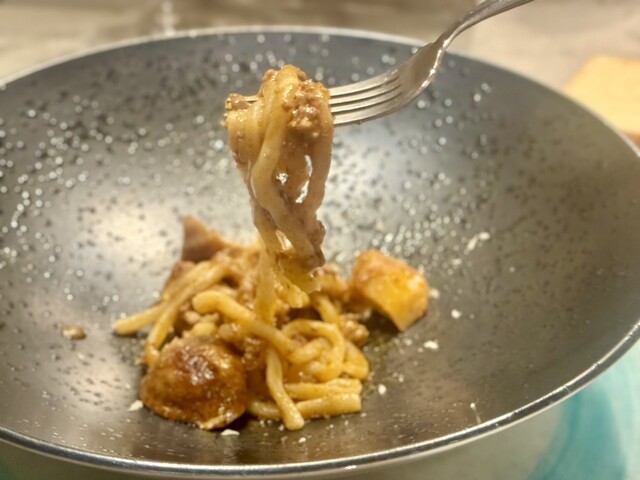 ビーゴリのパスタはもちもちでボロネーゼのからみがよく美味しい
