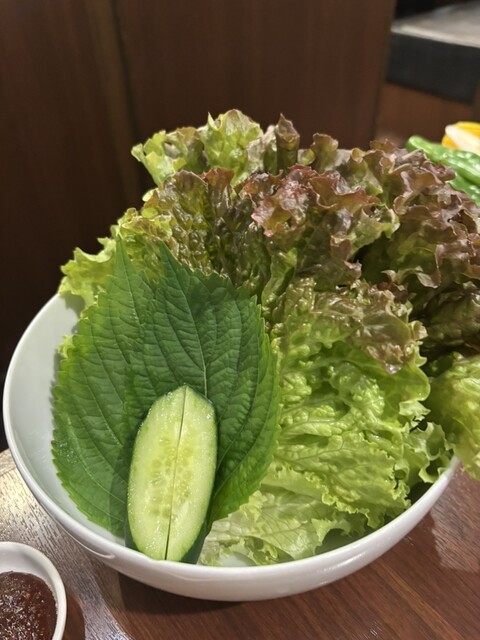 サラダは、ドレッシングが美味しくてとまりません。その後、キムチを食べたところでお肉登場です。一気にオールスター勢揃い!