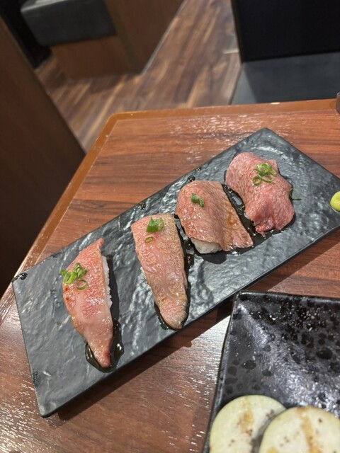 極上の舌からロース、赤身、カルビでビール追加となります。そして、肉寿司からの焼きしゃぶ、ほっぺ、ハラミで追加ビール!!