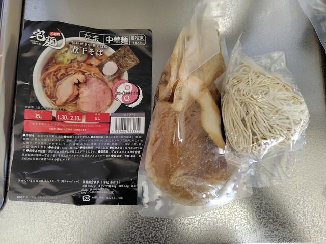 スープ湯煎して、チャーシュー湯煎して、ネギ切って、麺茹でて、盛り付けて完成