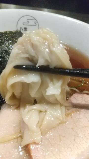 今日のワンタンは結構完璧、肉エビとも餡自体のなめらかさと味付が絶妙、皮のゆで具合もツルチュルで理想系