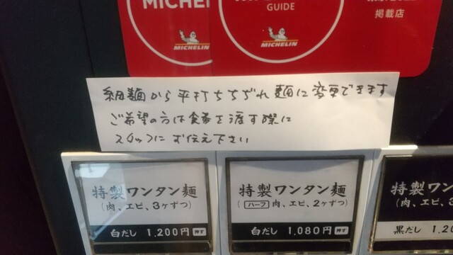 券売機で購入後、店員さんへ券を渡す際ちぢれ麺でと口頭発注