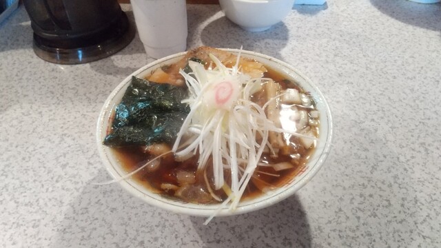 20分弱で到着、スープなみなみに白ネギがこんもり