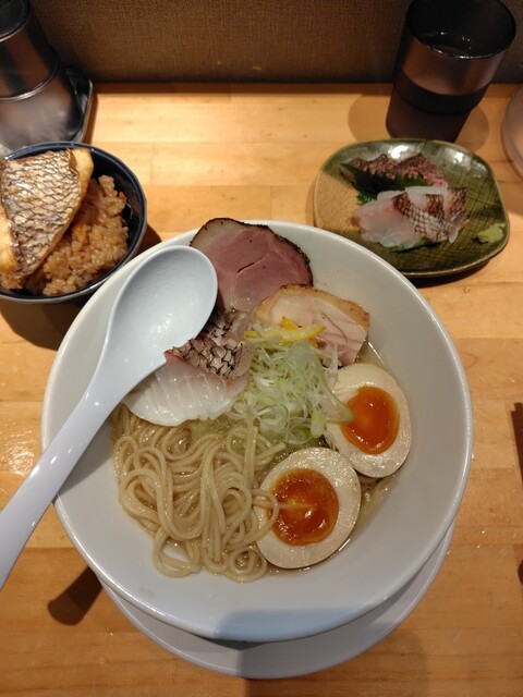 ラーメン屋さんでこんなお刺身出てくるのはビックリするわー笑