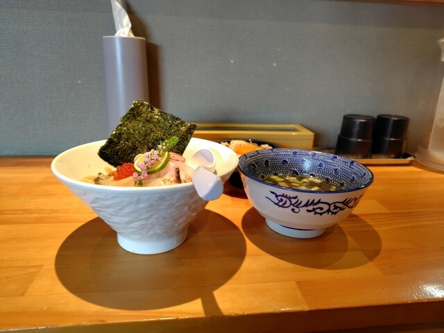 松葉蟹の焼き出汁背脂中華蕎麦(塩)と漁師の親蟹ぶっかけTKG