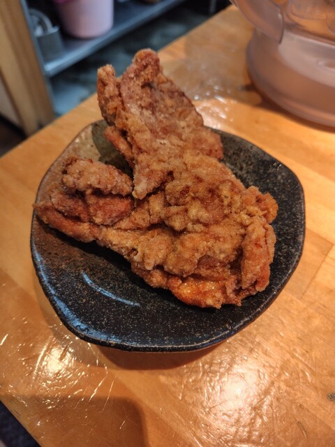 揚げたて激熱、カラッと薄い衣がカリカリと、生姜や醤油の旨味の効いた味付けもバツグン
