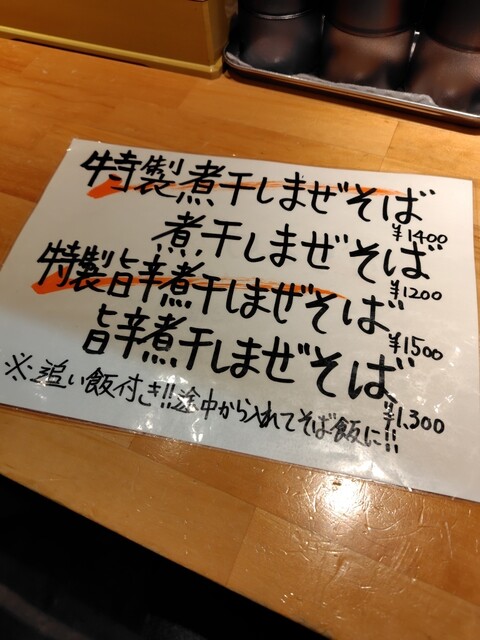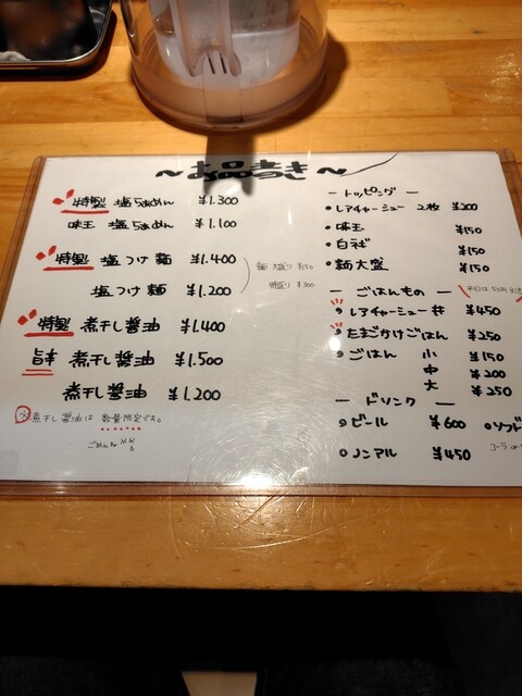 メニューを頂き拝見、塩と塩つけと煮干し醤油の他に煮干しまぜそばやってるんだ