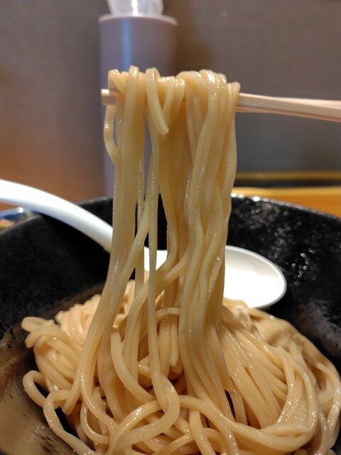 ここに合わせる麺は中太い断面丸めなストレート麺、ツルツルプリッとモチっとした麺はよく合う
