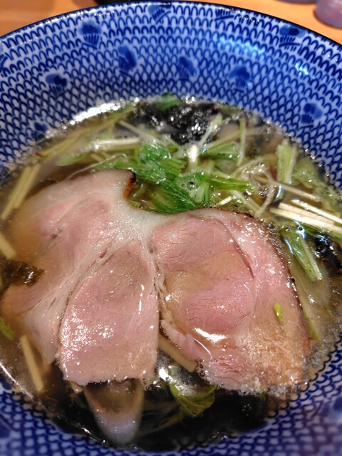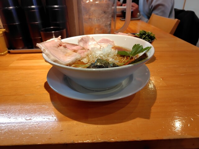 豚肩ロースチャーシュー、鶏モモチャーシュー、白ネギ、水菜、揚げネギ、黒バラ海苔