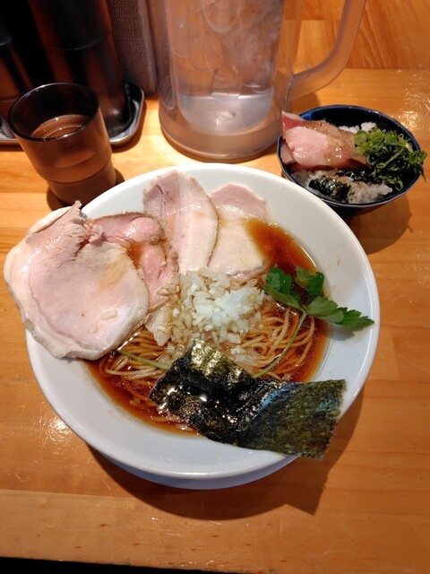 のどぐろ煮干しの出汁中華蕎麦1000円、船内漬け!ホタルイカの沖漬丼500円(この日限定)