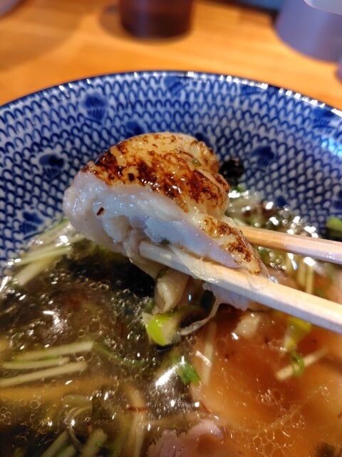 白濁のスープ、新鮮な真鱈を焼いてスープにしたとのことで鮮魚系の白湯スープの様相
