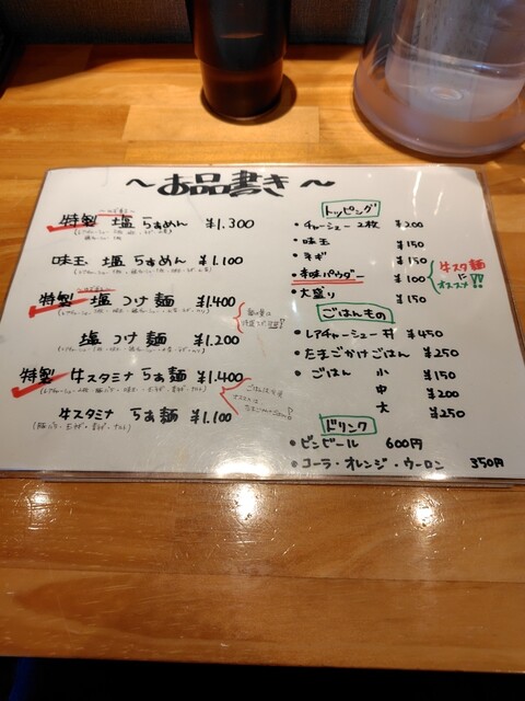 この日のメニューは塩らぁ麺と牛スタミナの2種が中心