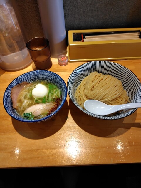 この日は狙いの塩つけ麺を、相方は味玉塩らぁ麺に白ネギトッピング