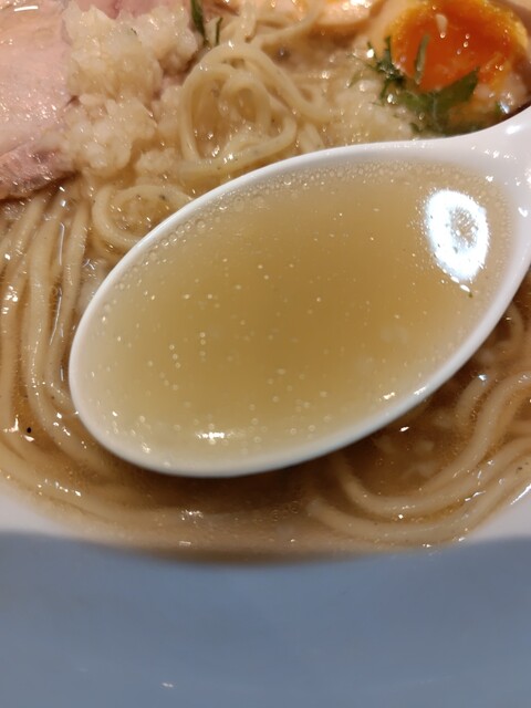 鯛の旨味に溢れる清湯淡麗透明な塩スープ、前回同様塩ダレもまろやか飲みやすい