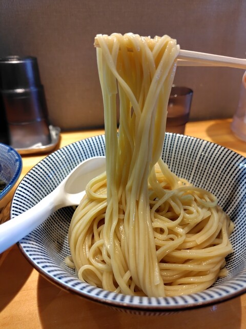 つけ汁は淡麗塩スープ、ちょいと塩分濃度は高めではあるがよりスッキリ淡麗な味わいは変わらず
