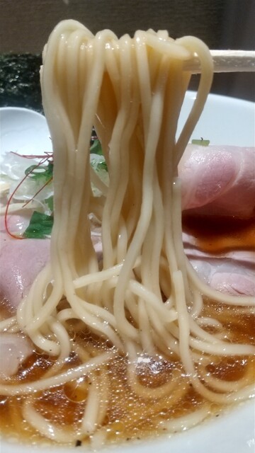 中太のストレート麺も煮干醤油や前回の焼きあご醤油と同じ麺かな?、ツルツルモチっとした麺は色々使えるね
