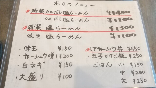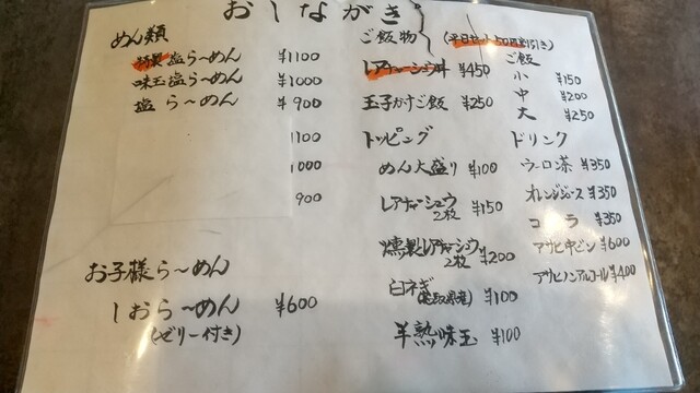 店内待ち中にメニューを渡されると、塩らーめんのほかにしょうゆらーめんの文字が!