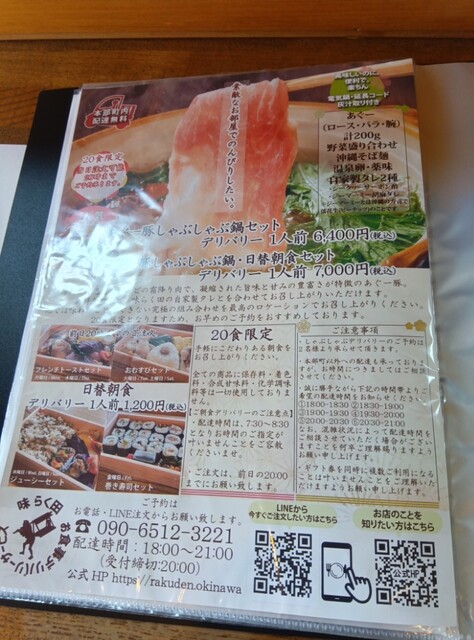 ランチメニューはらくでん定食 税込 2350円 一択となります。