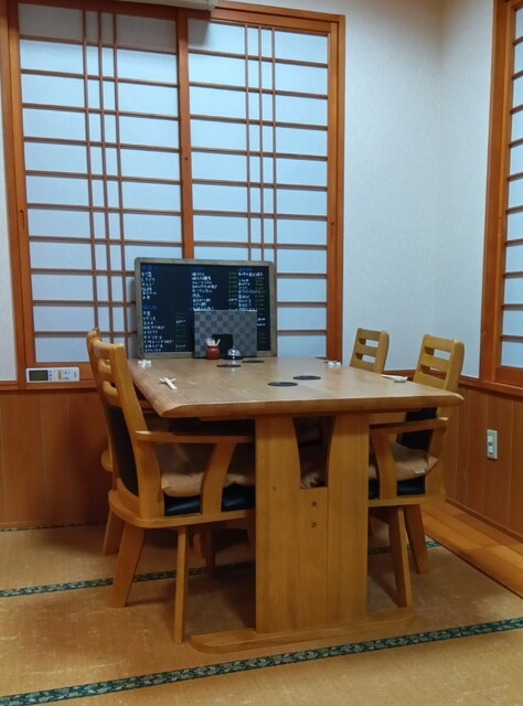席はカウンター席5席の他、お座敷の畳の上に置かれたテーブル席と座卓です。