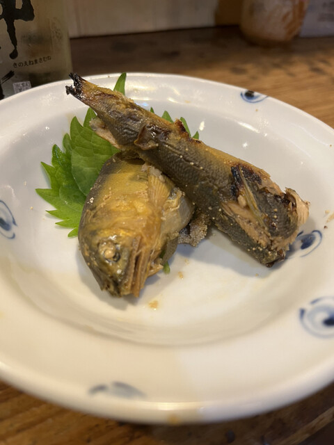 天然子持ち鮎の甘露煮。柔らかい。箸で切ったら崩れるので、かぶりつきます。美味いわぁ。