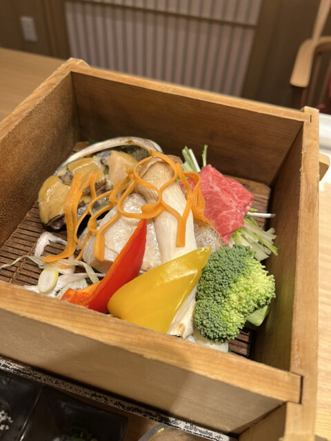 蒸籠蒸しは鮑とのどぐろ、能登牛。これは贅沢でした。