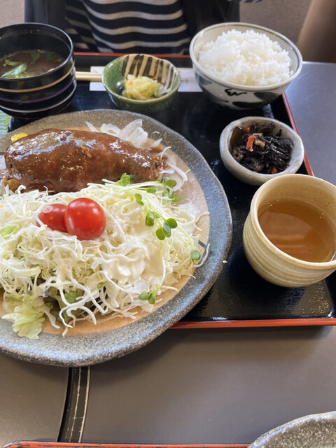 で、ハンバーグ定食をふたつ注文。河内屋はご飯大でお願いしました。
