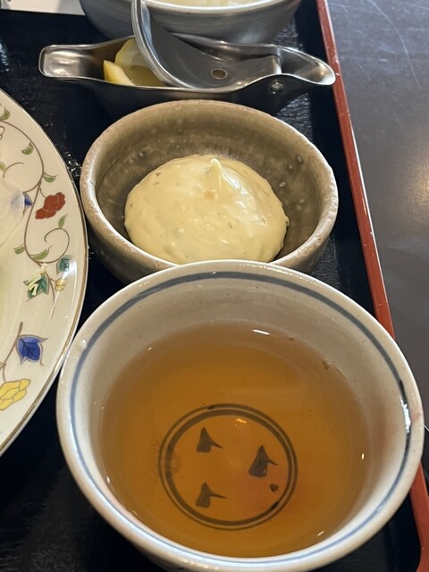 その次はデミグラスソースに辛子を混ぜてつけます。これは、はふはふ。これは、美味い。ハフハフはふ。
