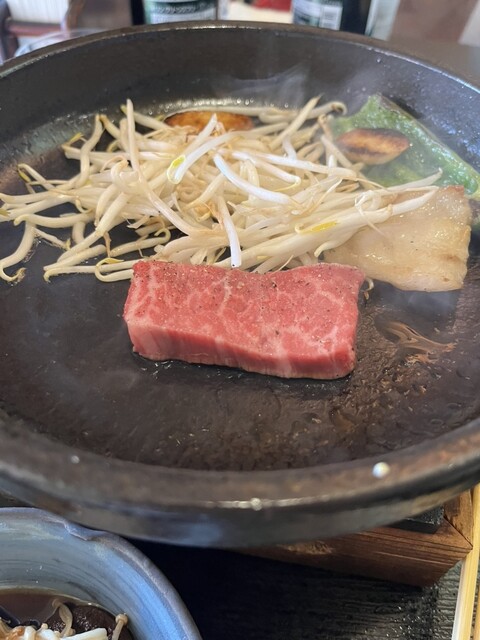 オーダーを取りに来た女性スタッフに「今日は特別なんで特選牛肉の陶板焼き、ロースで」とお願いしました。にっこりと笑われて「ご飯は大にしましょうか」と尋ねられたけど「並で」と答えてしまいました。