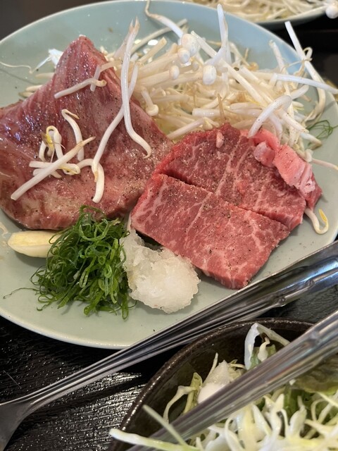 過去何十回と訪問して、一度も注文していない一品料理から選んだ牛の炙り。ニンニクチップを絡めて、特製のおろしポン酢でいただきます。お肉の旨味をたっぷりと味わうことができます。