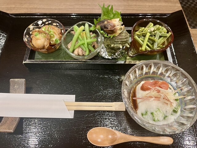 お料理のおまかせコースは3種類。『軽めに』『程良く』『充実充実の』。私たちは『程良く』でお願いしました。お料理は素材が良くどれも美味しかったです。とくにウニとヒラメのお刺身はウニをヒラメに巻いて食べると絶品でした。