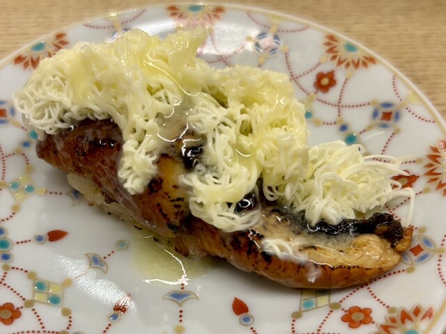 バターの綿雪がのっている独創的なお寿司です。