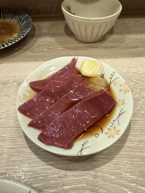 生系メニューはチレの刺身(脾臓をユッケ風に頂きます)、ミノ湯引き(コリコリのミノをポン酢醤油で頂きます)、生センマイ(美しい黒毛和牛のセンマイをゴマだれで頂きます)、ハツのたたき(大根おろしとポン酢醤油で頂きます)の4品。
