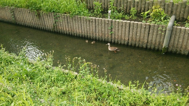 鴨の親子連れ。可愛い~(~▽~@)♪♪♪